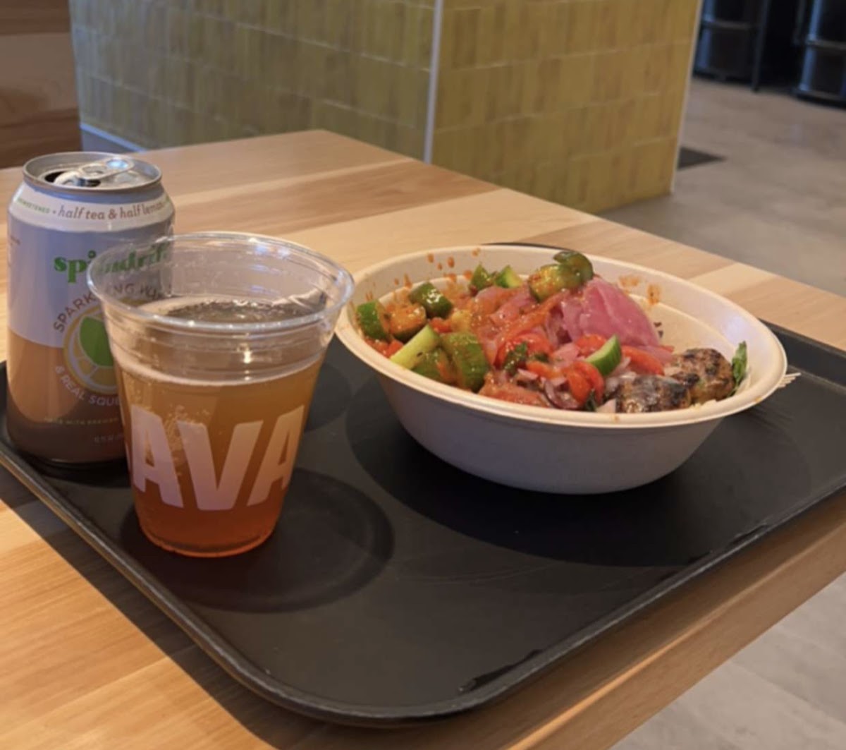 The menu at Cava Columbia is where things get really exciting. You can mix and match ingredients to create your own Mediterranean masterpiece or try one of their popular chef-curated options. If you’re new here, don’t miss the Greek Salad, a refreshing blend of crisp veggies, olives, and feta that perfectly captures the essence of Greek cuisine. The Harissa Chicken is another standout - tender, spicy, and full of depth. For something a bit lighter yet hearty, the Burrito Bowl or a vibrant Poke-style bowl brings together wholesome grains, fresh veggies, and protein-packed goodness in every bite.